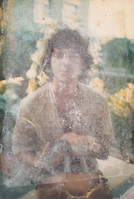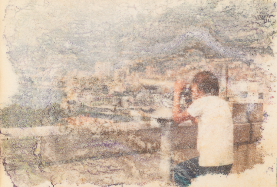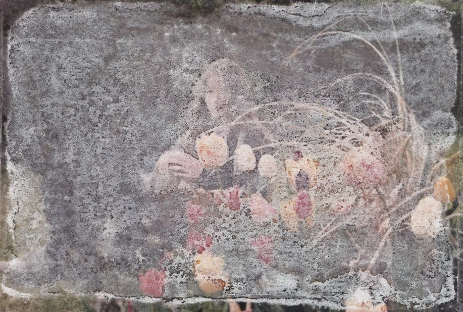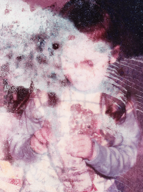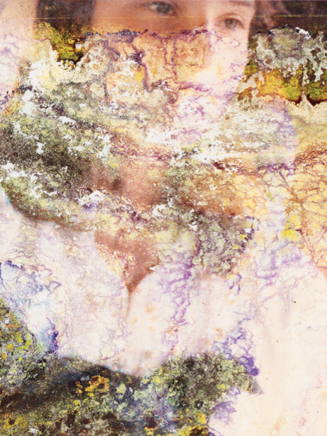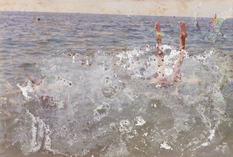 The work is based on a process of rescuing very personal images. Some old small photographs founded in the artist’s basement are completely damaged and forgotten. By gathering them, cleaning them, scanning them, reframing and printing them in a very larger size than the original, they become witnesses of marks of time and memory. Some original details of moisture and chemical reactions becomes visible to the eye.